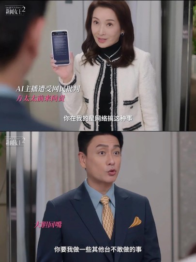 古肇华为了赚钱搞AI主播,方太看到很生气,但当听到古说公司股票因此上涨后,气立马就消了。